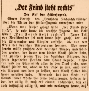- Noch erstaunlich ist nun, dass auch die Nationalsozialisten damals einen Kampf gegen "rechts" führten. Auch diese - gezielt zum Hass gegen Teile der Bevölkerung aufstachelnde Hetzparole - haben also die gefühlten Linken von heute von den Nazis übernommen.